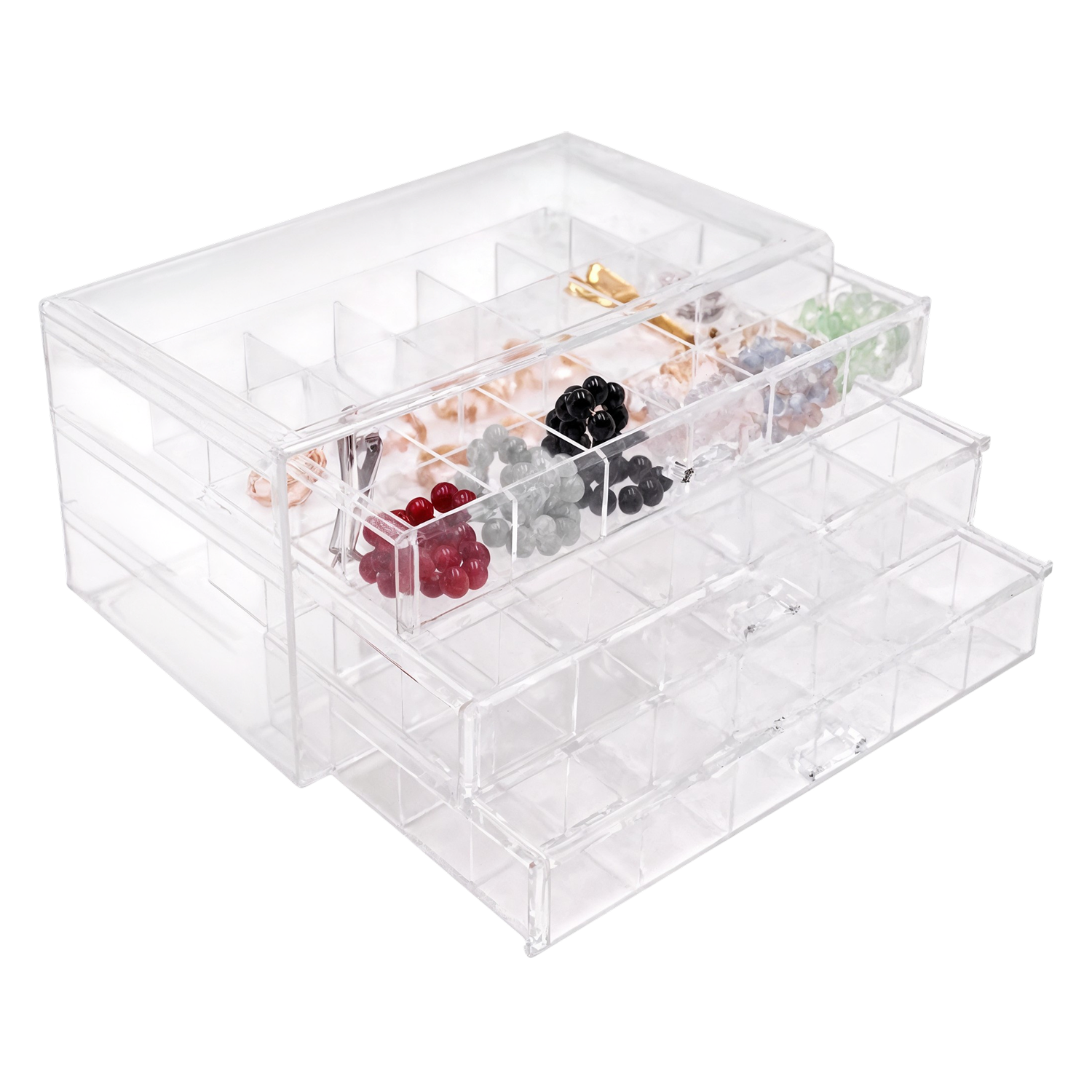 Organizator acrilic transparent — 72 de compartimente in 3 sertare